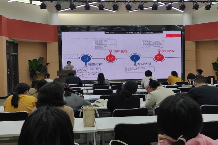 接着,各专业辅导员分别就学生整体思想状况、班级学风建设现状、上学期期末成绩分析以及班风学风建设规划措施作了详尽汇报。在期末成绩分析中,大一年级辅导员从课程平均分、挂科率、班委成绩分布等方面对所带班级进行质量分析,明确了今后学风建设工作的目标和重点;高年级辅导员侧重于2022-2023学年上下学期的成绩对比,直观地反映出学生一年以来的成绩变化。在班级学风建设规划和措施方面,辅导员们依据班级学情制定了“一班一策”、“一人一策”,着力解决学风建设中的突出问题。有针对性地补短板、强弱项。