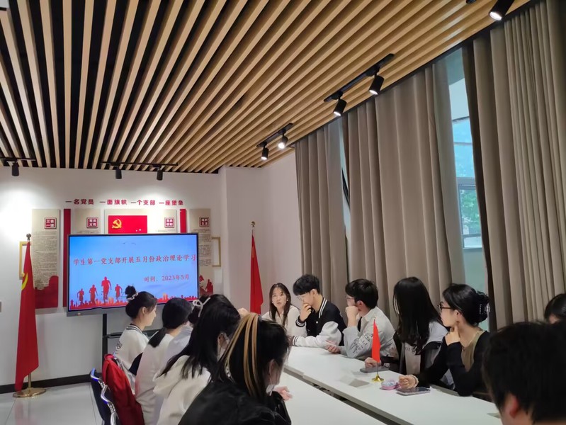 5月18日下午,智行书院学生第一党支部在书院新时代党员活动室开展五月份政治理论学习。会议由党支部书记李莹莹主持,第一党支部全体党员参加。