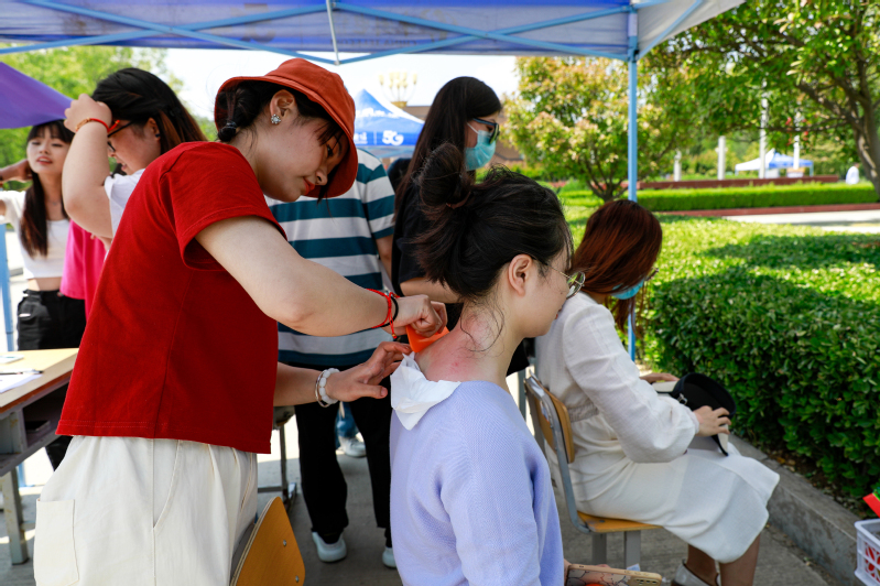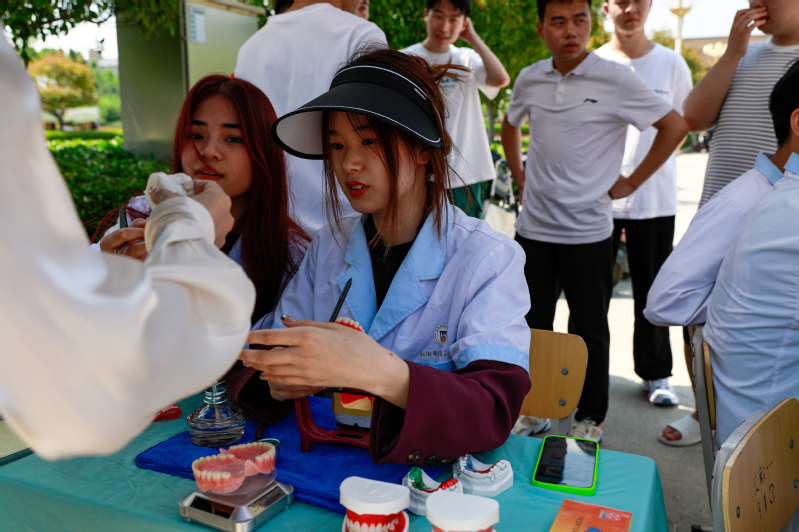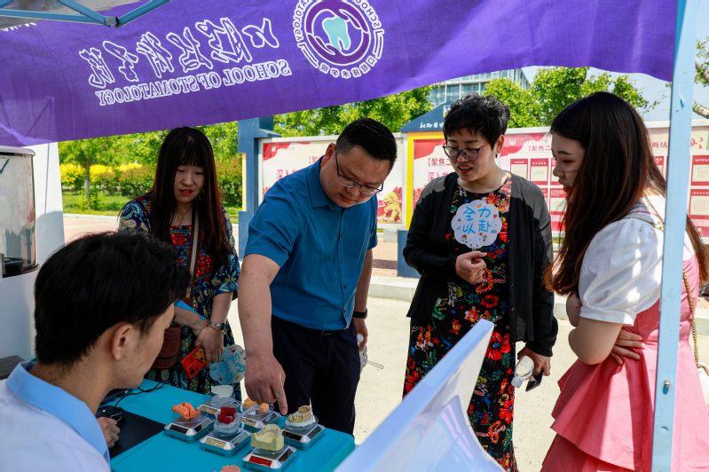 启动仪式结束后,与会师生实地参观了“专业+”劳动技能展演和第十六届“挑战杯”大学生课外学术科技作品竞赛作品展。“假如在生活中,遇到突发情况,患者无意识倒地,一旦抢救不及时,几分钟内可能发生不可逆的脑损伤。但是我们学会心肺复苏,抓住黄金四分钟进行抢救,挽救的不仅仅是一条生命,而是整个家庭!”来自大健康服务协会的孟祥硕同学说。临床穿刺术、3D打印口腔数字化技术、中医刮痧、海姆利克急救法、医工融合研发产品等各具专业特色的展演项目,让前来观看的师生大饱眼福,身临其境感受专业教育的独特魅力。本次展演分为技能操作和成果展示两类,由我校专业院系指导学生社团依托专业技能竞赛、实习实训操作、智能制造将专业技能技艺、高新技术通过展演活动集中进行宣传展示,让“劳动光荣、技能宝贵、创造伟大”成为校园新风尚。