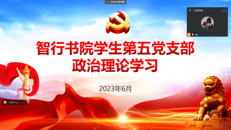 6月20日晚,智行书院学生第五党支部于线上开展六月份政治理论学习。会议由党支部书记杨蕊主持,党支部全体成员参加。