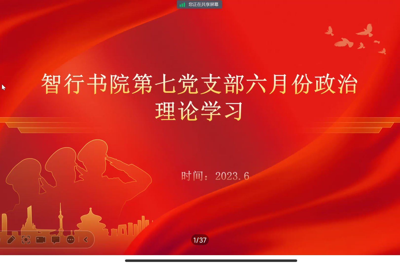 6月23日晚,智行书院学生第七党支部在新时代党员活动室及腾讯会议开展六月份政治理论学习,会议由党支部书记胡海洋主持,党支部全体成员参加。