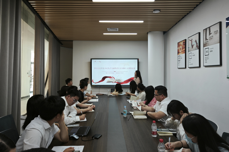 为推进学习贯彻习近平新时代中国特色社会主义思想主题教育走深走实,7月5日下午,智行书院党总支召开专题学习研讨会,学习习近平总书记关于力戒形式主义、官僚主义的重要论述,并聚焦“为谁树政绩、树什么政绩、靠什么树政绩”进行研讨。
