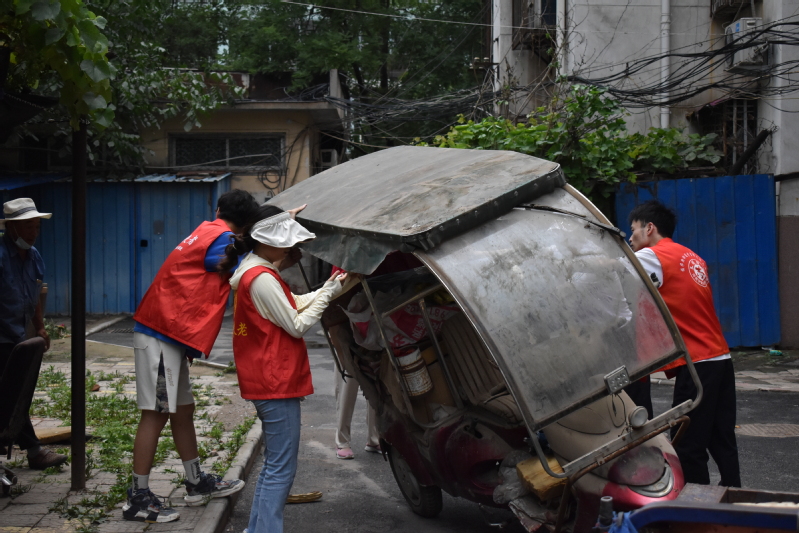 在现场,队员们还通过形式多样的互动交流,让老年人感受到呵护关爱。刚来的时候,队员们帮助当地老人一起修理三轮车。在一位老人测完血压血糖之后,了解到这位老人是一位独居老人,所以队员们帮助老人搬东西上楼梯回家。