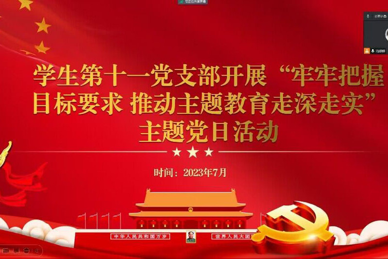为深入学习贯彻习近平新时代中国特色社会主义思想主题教育,推动主题教育走深走实、入脑入心,7月18日中午,智行书院学生第十一党支部开展了“牢牢把握目标要求推动主题教育走深走实”主题党日活动,活动由党支部书记冯婷婷主持,支部全体成员参加。