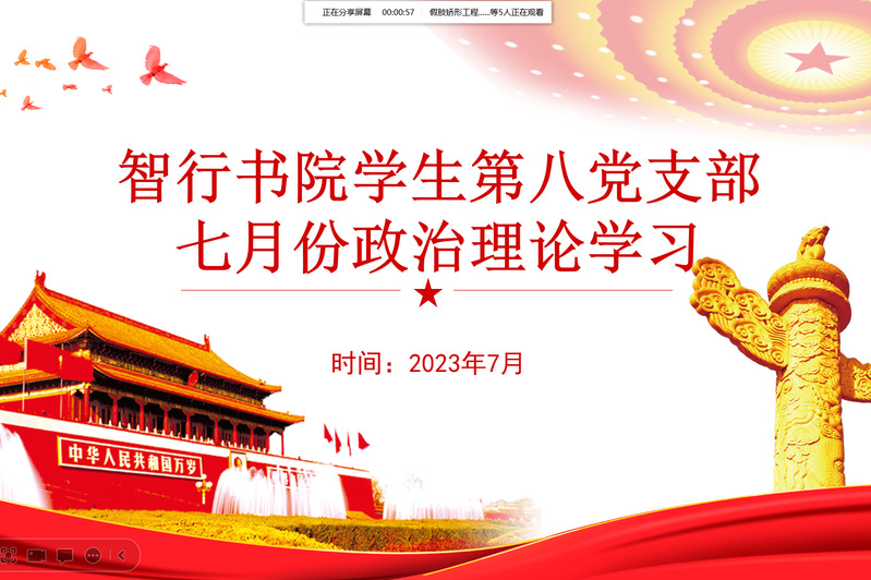 7月19日中午,智行书院学生第八党支部通过腾讯会议召开七月份政治理论学习。会议由党支部书记娄冰琼主持,党支部全体党员参加。