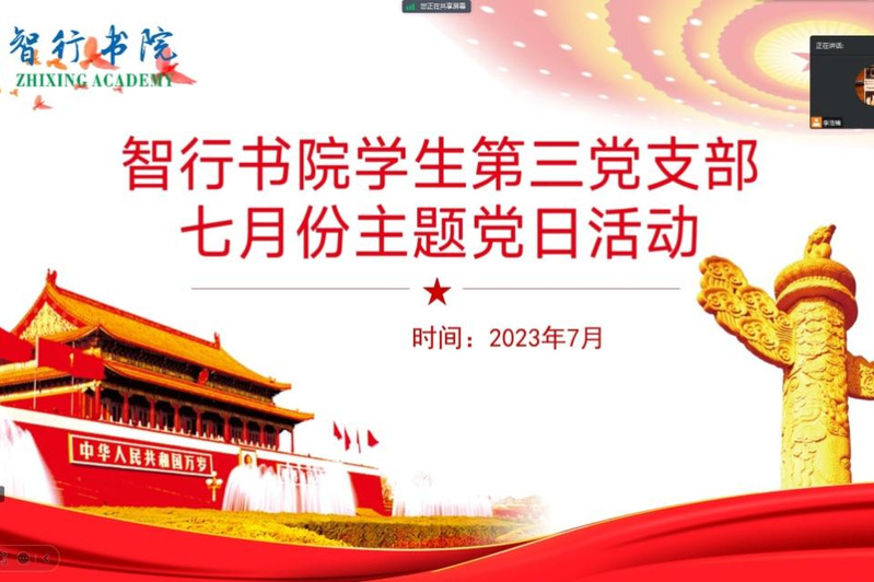 为扎实推进学习贯彻习近平新时代中国特色社会主义思想主题教育,7月20日下午,智行书院学生第三党支部开展 “牢牢把握目标要求,推动主题教育走深走实”主题党日活动,活动由党支部书记李浩楠主持,党支部全体成员参加。