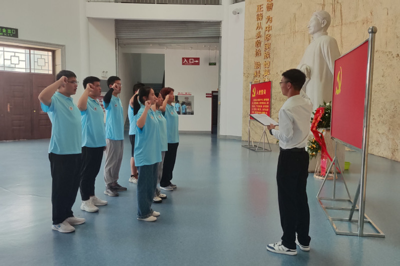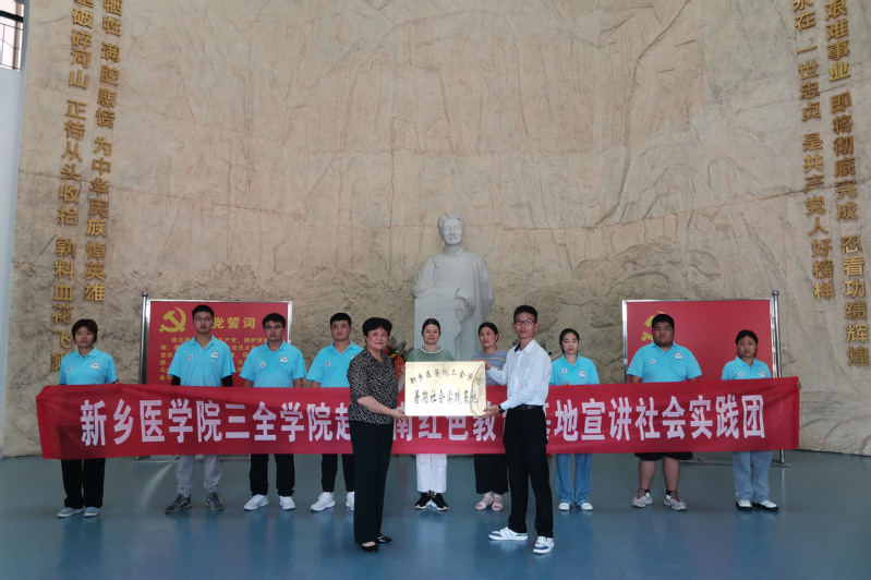 “壮哉身列国,遗爱万民怀”。7月15日,实践团来到位于河南省南阳市镇平县的彭雪枫纪念馆参观学习,更加深入地了解到这位被毛泽东、朱德誉为“共产党人的好榜样”的英雄人物。身为新时代的中国青年,更应该学习彭雪枫将军不朽的精神,为祖国繁荣富强贡献出自己的力量。参观结束后,实践团队与彭雪枫纪念馆进行了暑假实践基地的签约并举行挂牌仪式,纪念馆向实践团赠送了彭雪枫将军事迹的相关书籍。最后,实践团全体成员在党旗下进行庄严宣誓:“我们要缅怀革命先烈,争做强国青年,传承革命先烈的坚强意志......”掷地有声的誓言回荡在纪念馆里,也激荡在每位实践小队成员心中。