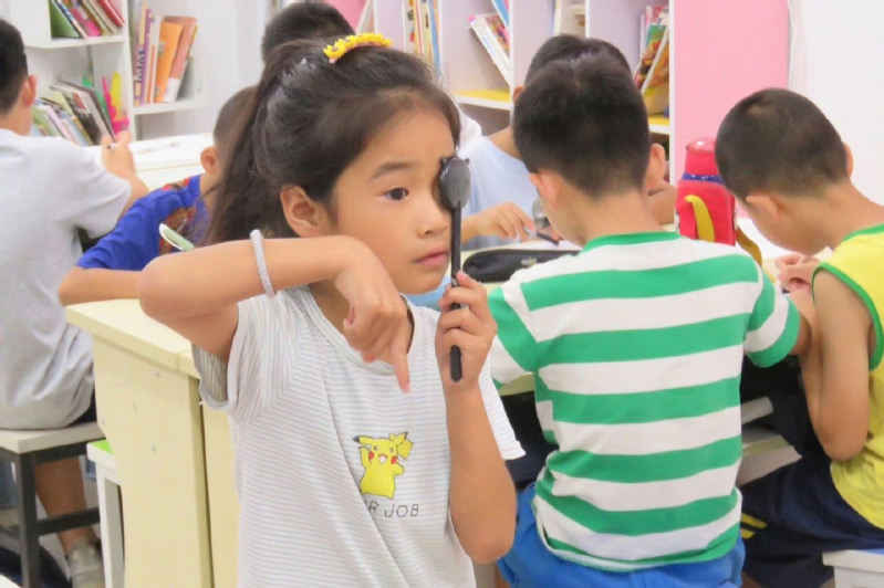 讲座结束后,实践团队员们为孩子们进行了视力表对照检查。,针对部分孩子们已经出现的近视征兆和其他需注意的问题作了耐心的解释,并组织孩子们相互测试视力,沉浸式体验小小眼科医生角色,激发孩子们保护眼睛的意识。“小医生”和家长们对此次活动给予了很高的评价,纷纷夸赞这是一场“既有趣也很有教育意义”的活动,希望把这类活动推广开来,让更多的人去关注孩子的眼健康。