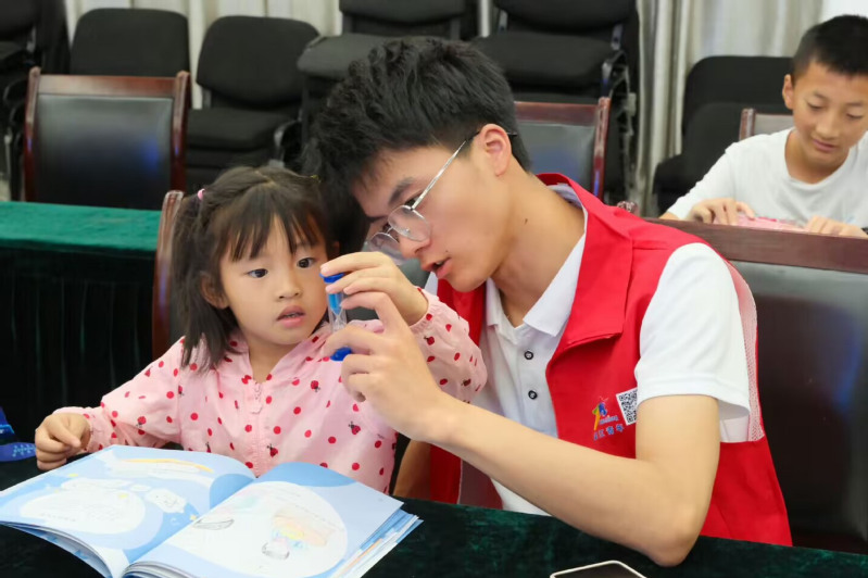 暑假是儿童青少年近视防控的关键期,为引导孩子们科学用眼、规律作息、主动防控近视,7月21日,智行书院关爱视力健康,倡导科学用眼暑期社会实践队来到淮滨县开展亲子活动,让孩子们在视力测试的同时,了解保护眼睛的重要性。
