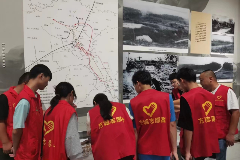 参观学习结束后,队员们与红色教育基地的志愿者进行座谈,实地采访了基地负责人,负责人向队员们介绍了方城县旧貌换新颜的艰辛之路。队员们也从志愿者的口中了解到县城的主要经济收入的改变和基础设施的改善,感受到当地人为了追求美好生活“自力更生、艰苦创业、团结协作、无私奉献”的精神内涵。