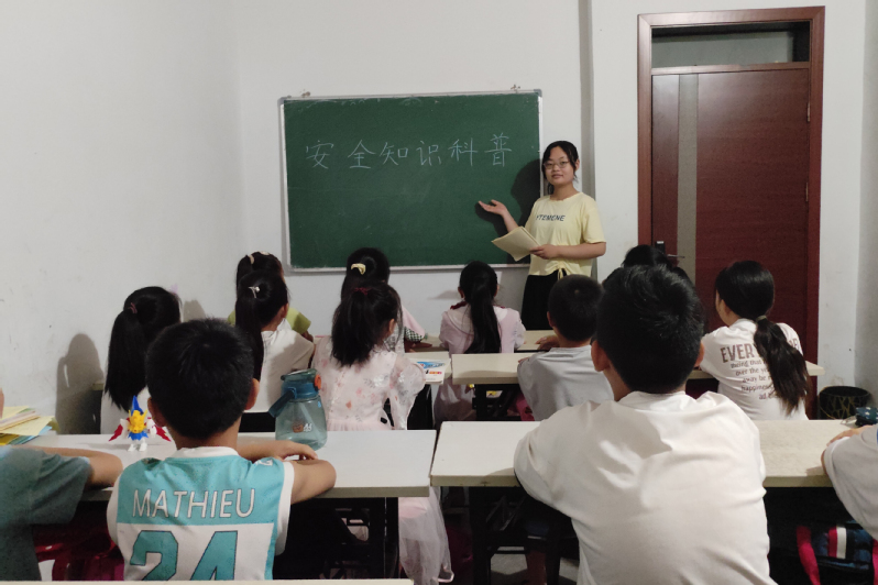 助力乡村振兴,从关注孩子的安全教育开始。人才振兴是乡村振兴的前提,人才的教育和培养更是要从小关注,要从小抓起,实践团成员为当地40多名小学生进行安全知识科普。正值炎热夏季,村中的儿童放假在家,每年夏季又是溺水事故高发的时间段。为提高小学生的安全意识以及自我保护能力,实践小队的队员们举办一个主题为“高温天气下小朋友应该注意的事项”的宣讲活动,宣讲中不仅强调了假期中独自一人去河边玩耍的危险性还强调了自己独自居家时应该注意的事项。最后,实践小队的队员们辅导孩子们写作业,与他们下棋并为检测视力,提高孩子们对视力的重视与保护意识。