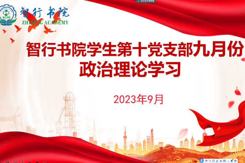 9月19日晚,智行书院学生第十党支部通过腾讯会议开展九月份政治理论学习,本次会议由党支部书记董婷婷主持,党支部全体党员参加。