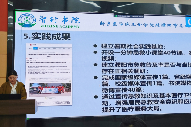 团队汇报结束后,评委老师对各答辩项目一一进行点评指导,针对“调研报告成果转化”“新闻宣传成果不够深入”等问题提出改进建议,希望各实践团队进一步梳理实践过程、总结实践成果。总览此次答辩,各支队伍结合选题与专业特色,从急救知识宣讲,医疗志愿服务、乡村振兴、红色文件宣讲、发展等各个角度,扎实开展形式各样的实践活动,取得了丰硕的成果。同时,智行学子立足丰厚的理论功底,以独特视角聚焦社会现实,用脚步丈量当下中国的发展成就,展现了新时代实事求是、勇于进取的青年风采。
