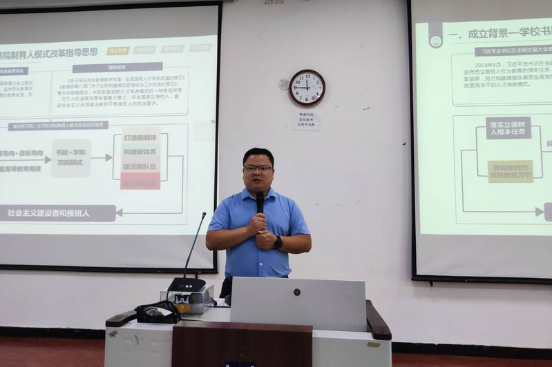 为扎实做好2023级新生入学教育工作,让新生更好地了解校情校史,增强学生的认同感、归属感、荣誉感,智行书院分别于9月21日、22日在两校区开展了新生入学教育之书院建设与发展专题讲座,讲座由书院党总支书记刘凯主讲,书院1400余名新生参加。