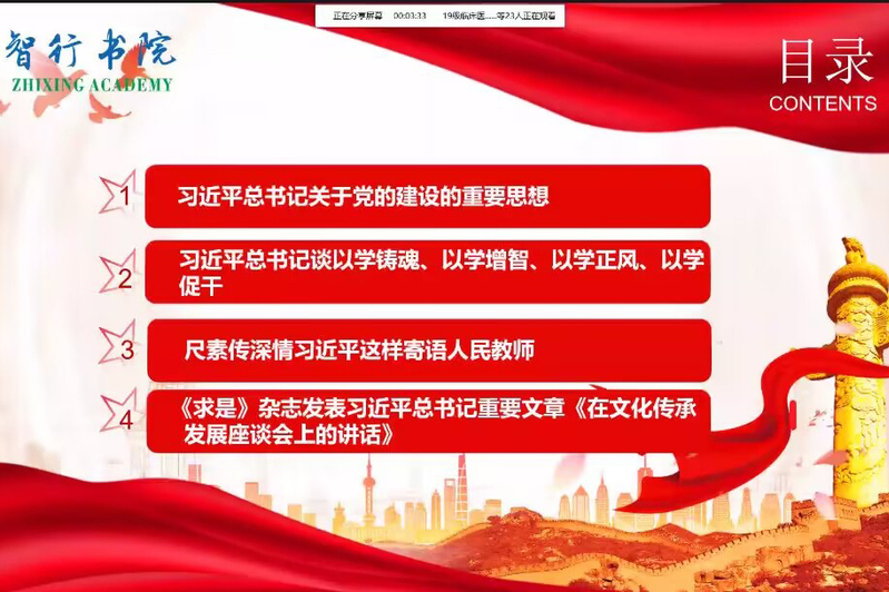 9月20日下午,智行书院学生第七党支部于线上开展九月份政治理论学习,本次学习由党支部书记胡海洋主持,党支部全体成员参加。