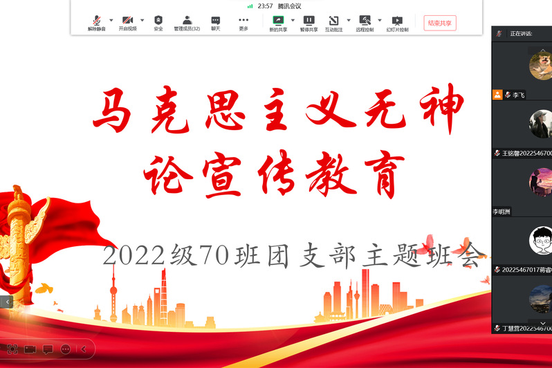 团支部共有团员25人,以思想建设为重点,以丰富多彩的活动引导和组织支部成员开展政治理论学习。严格落实“三会两制一课”,定期召开团员大会,严格执行团员教育评议制度和团员年度团籍注册制度。同时也积极开展了“学习习近平新时代中国特色社会主义”“党史理论学习”等主题团课及专题生活会,参与率达到100%。支部全体成员认真且积极的完成每周一次的“青年大学习”;在推优入党方面,团支部也会认真审查入党申请人,采取公平公正的方式择优推优,引导广大团员积极向党组织靠拢。