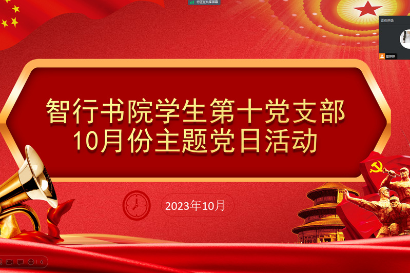 为充分发挥党员先锋模范作用,夯实基层党组织战斗堡垒能力,持续深入推进党支部标准化规范化建设,10月20日下午,智行书院学生第十党支部开展“亮特色、建样板、创标杆”主题党日活动,此次活动由党支部书记董婷婷主持,支部全体成员参加。