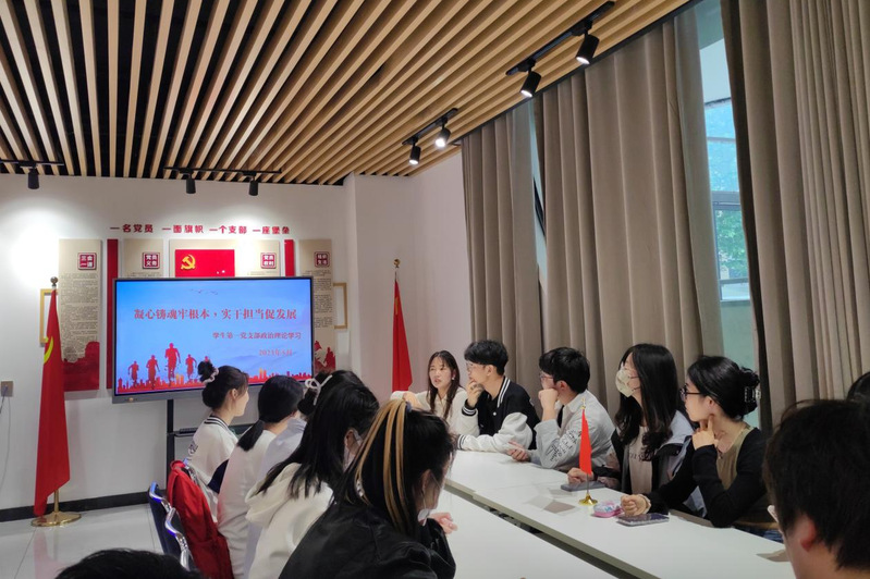 为深入学习贯彻习近平新时代中国特色社会主义思想,贯彻党的二十大精神,统一党的思想,敢于担大任,求发展这一目的。5月10日晚学生第一党支部在智行之家新时代党员活动室开展以“凝心铸魂筑牢根本,实干担当促进发展”主题党日活动,会议由党支部书记李莹莹主持,党支部全体党员参加。