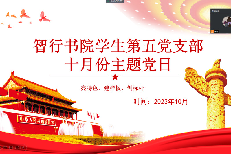 为进一步提升党支部的凝聚力与战斗力,充分发挥党员的示范引领和辐射带动作用,10月23日,智行书院学生第五党支部开展“亮特色、建样板、创标杆主题党日活动。本次活动由党支部书记杨蕊主持,支部全体党员参加。