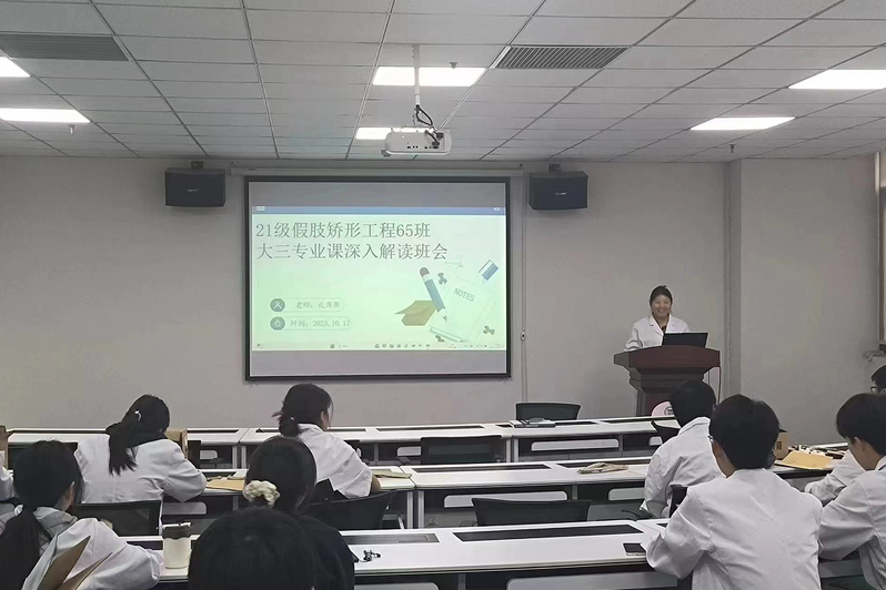 10月17日,康复医学院学业导师孔奔奔于医工实训楼五楼会议室开展了以“大三专业课深入解读”为主题的指导活动。2021级假肢矫形工程65班全体同学参会。
