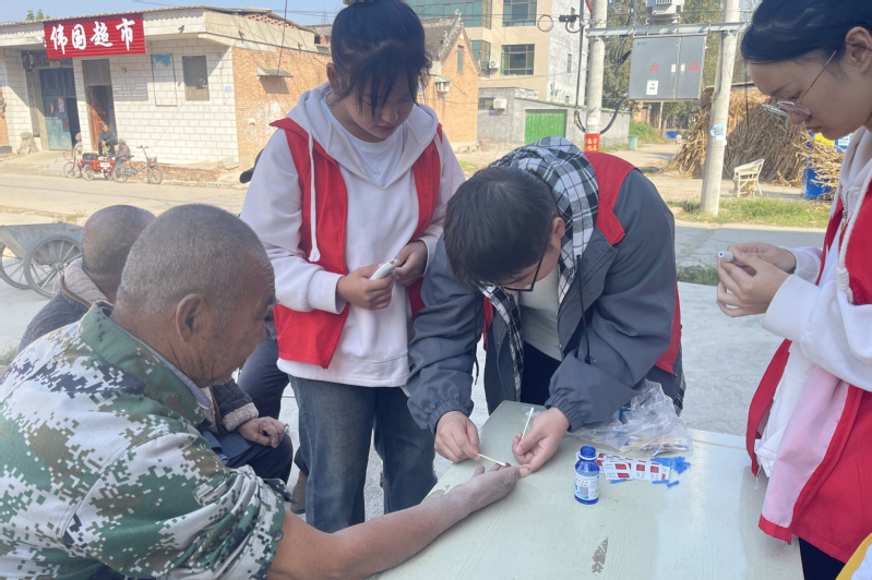 随后,志愿者们又走进姚村街道,为村内的老人开展测量血压血糖和普及健康知识志愿服务活动,发现有高血压的村民,志愿者们会及时叮嘱要注意饮食和睡眠,以及如何做好日常护理,鼓励村民要树立积极乐观的生活态度,养成健康的生活习惯。志愿者们耐心接待,热心服务每位闻讯前来的村民,受到了村民的一致称赞,连连说到:“健康检查能在家门口,方便极了,希望今后能举办更多这样的活动。”