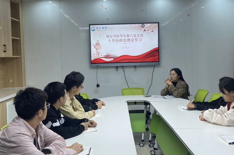 为引导学生在学思践悟中坚定理想信念,10月20日晚,智行书院学生第八党支部于二公寓三楼党支部工作站开展政治理论学习。会议由党支部书记娄冰琼主持,党支部全体成员参加。