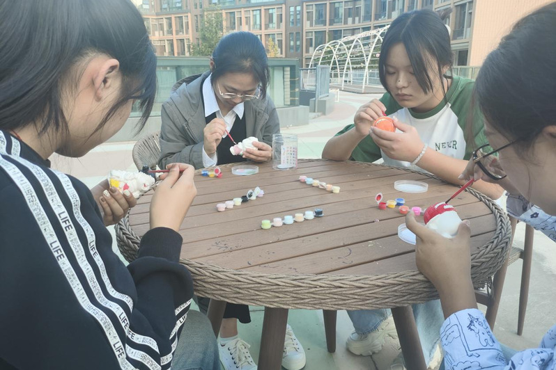 石膏娃娃、书签、泥塑、粘土……在书院II零壹九广场,同学们迫不及待地挑选出喜欢的手工制作材料,“沉浸式”体验DIY的乐趣。大家放空内心,释放自己的创造力和想象力,全身心投入到手工制作中,憨态可掬的维尼熊、乖巧可爱的星黛露……素白的石膏胚转眼间化为活灵活现的动物们。每一个作品都象征着生命的美好与活力,也代表了同学们对未来的期待和对生活的热忱。书院心理专干张悦表示:“此次活动的举办锻炼了学生的动手能力,同时在制作过程中得到精神上的享受,用心感悟劳动之美,在劳动中释放情绪,减轻压力。”