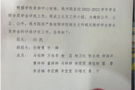 根据学校资助中心安排,我书院启动2022-2023学年学生综合奖学金评审工作,现成立评审工作小组指导监督2022-2023学年学生综合奖学金评审工作,名单如下: