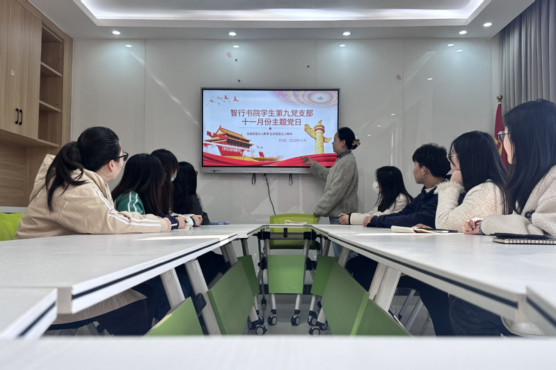 为了更好地贯彻落实习近平新时代中国特色社会主义思想,进一步增强党员爱国意识,激发爱国情怀,11月17日,智行书院学生第九党支部开展了“加强爱国主义教育,弘扬爱国主义精神”主题党日活动,活动由党支部书记高雯雯主持,支部全体成员参加。