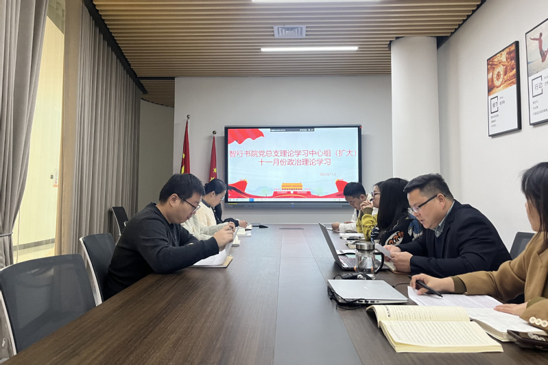 11月20日上午,智行书院党总支理论学习中心组(扩大)十一月份政治理论学习于书院会议室召开,本次学习采用“集中学习+讨论分享”的方式进行,党总支理论学习中心组全体成员及各党支部书记参加。党总支书记刘凯主持会议。