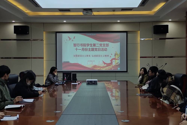 11月16日,智行书院学生第二党支部于新乡校区综合楼二楼会议室以线上线下相结合的方式,开展了“加强爱国主义教育,弘扬爱国主义精神”主题党日活动,活动由党支部书记杨卫红主持,支部全体成员参加。