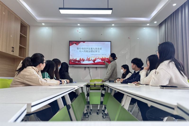 为加强党员政治理论素养,11月21日上午,智行书院学生第九党支部在二号楼学生党支部工作站召开了十一月份政治理论学习,会议采用“集中学习+讨论分享”的方式进行。会议由党支部书记高雯雯主持,党支部全体成员参加。