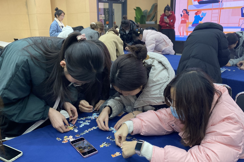 “‘宿’说青春,寝室合照拼图大赛”在激烈的角逐中圆满落幕。比赛中,来自14间寝室的成员们争分夺秒、分工明确,有拼边框的,有拼主体的,有纵观全局统筹智指挥的......与最亲密的伙伴默契配合,看似复杂的拼图,在他们的共同努力下也渐露雏形。赛后,1329宿舍长余强分享了他们参加此次活动的感想:“拼图就像人生一样,需要耐心和技巧,但有时也需要一些运气和缘分,在这个过程中,我们不仅拼出了自己的作品,还收获了快乐和友谊。”