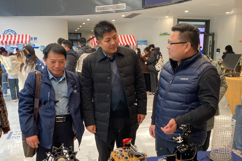 最后,老师和同学们来到智行书院联合智能医学工程学院一同打造的“智创未来之学生科技作品展”区,对学生制作的“机械手、多功能医护床、智能导盲机器人”等设计模型的科学性和创新性进行点评,并就如何引领学生做好大学生科研立项、如何斩获“互联网+”大学生创新创业大赛国奖等问题进行深入探讨。