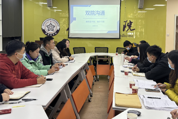 书院与康复医学院围绕在校生专业思想教育、科创能力培养、毕业生升学就业指导等工作共商共议。孙峰指出,目前书院康复类专业涵盖四个年级,学生基数大、需求广,双院应从学生入学起帮助其做好学业生涯规划,在课程设置、学业辅导、科研立项等方面增强联系,借助双院协同之力做好学生关心关怀。随后,双方针对学业导师相关事宜展开讨论,康复医学院行政秘书郭夕语表示院系将拓宽学业指导形式,利用课余时间带领学生去医院、公司等对口就业单位进行校外参观学习,帮助学生加强专业认同。最后,两院就融通毕业生岗位供给、确保康复毕业生高质量充分就业达成多项共识。