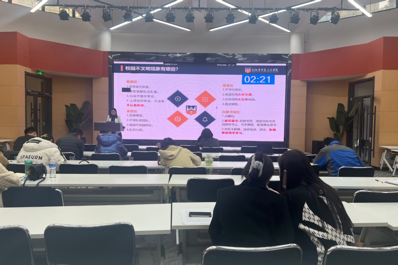 胡海洋老师以《规划启航职引未来》对学生进行职业规划与就业指导;娄冰琼老师以《我“心”换你“心”》引导学生如何建立良好的人际关系;李莹莹老师以《青春向党筑初心 踔厉奋发启新程》对学生进行入党启蒙教育;裴宁老师以《浓厚学风 充实你我》讲述学风建设的重要性;杨蕊老师以《大学生恋爱“宝典”》引导学生树立正确的恋爱观等。辅导员饱满的热情和充分的准备展现了辅导员的工作成效,凸显了专业素养和教育情怀。