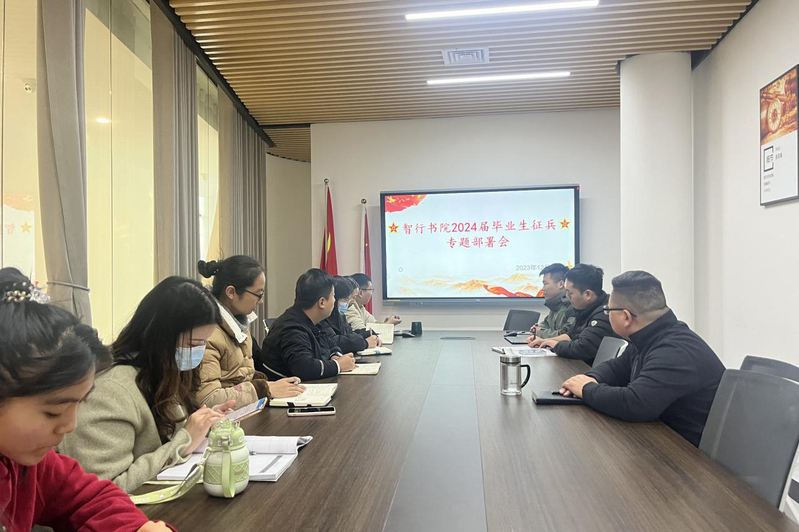 智行书院将以征兵专题部署会为契机,接下来,开展征兵培训会、宣讲会等多种方式的活动,相信在书院全体师生的共同努力下,一定能鼓励更多的毕业生加入到军队这个光荣的集体中去,全力做好2024届毕业生征兵入伍工作。
