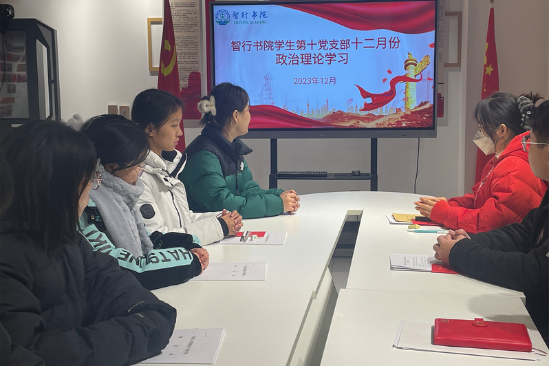 12月20日晚,智行书院学生第十党支部通过线上和线下相结合的方式开展十二月份政治理论学习,本次会议由党支部书记董婷婷主持,党支部全体党员参加。