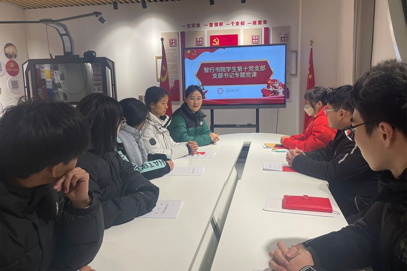 12月22日下午,智行书院学生第十党支部书记董婷婷在新时代党员活动室以“扬宪法精神 筑法治青春”为主题为党支部全体成员讲授了一场专题党课。