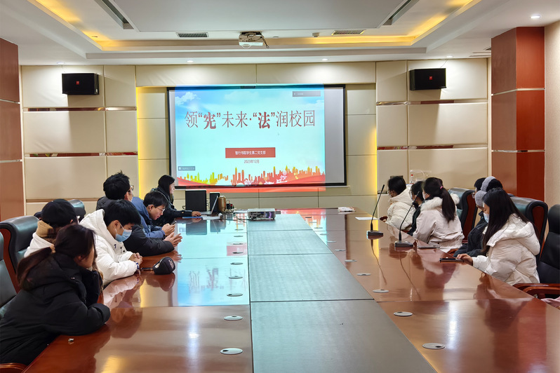 12月21日,智行书院学生第二党支部于新乡校区综合楼二楼会议室以线上线下相结合的方式,开展了“领‘宪’未来,法润校园”主题党日活动,活动由党支部书记杨卫红主持,支部全体成员参加。