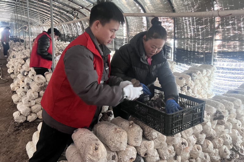 活动当天,志愿者们早早就来到了蘑菇种植基地,开始了他们的助力之旅。为了帮助基地应对低温天气影响,志愿者们在基地工作人员指导下积极采取措施,利用塑料包裹的方式,帮助种植户做好防寒保暖工作。此外,志愿者们来到一丛丛已经“探”出了头的蘑菇包前,看到朵朵蘑菇正在茁壮成长,犹如一把把撑开的“小伞”,志愿者们迅速明确每个人的采摘区域,迅速投入到义务采摘劳动中,所有人小心翼翼地采摘成熟的蘑菇,按照运送、晾晒的流程来回穿梭,呈现出了一派丰收景象。