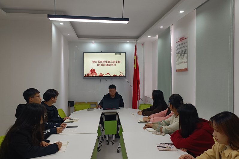1月21日晚上,智行书院学生第三党支部通过线上线下相结合的方式,在一号公寓党支部工作站开展了一月份政治理论学习,会议由党支部书记李浩楠主持,党支部全体成员参加。