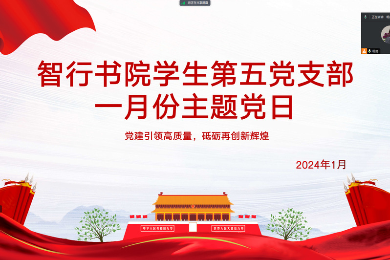 为深入贯彻落实新时代党的建设总要求,进一步加强和推进学生党员队伍建设,1月21日,智行书院学生第五党支部开展“党建引领高质量,砥砺再创新辉煌”主题党日活动,此次活动由党支部书记杨蕊主持,支部全体成员参加。