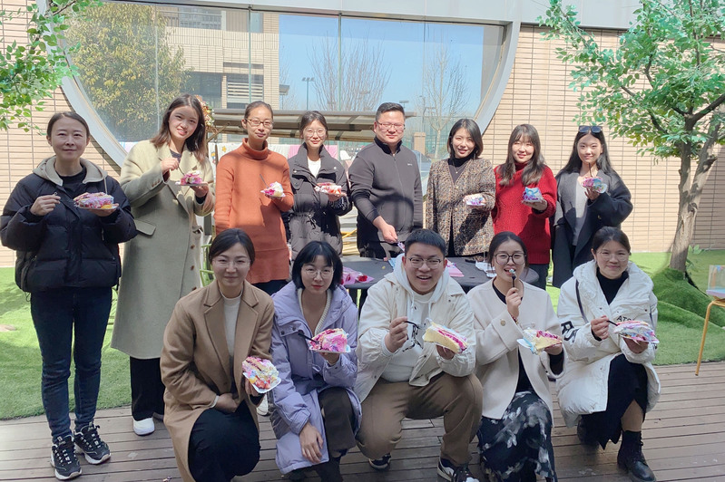 美好的时光少不了美食相伴,女神节遇上社区生日会,又给这个节日增添了一份特别的意义和许多欢乐的气氛。书院男老师们化身“甜点大师”,“偷偷”动起手来,制作女士们的“专属”蛋糕。经过一番精心的劳作,空气中弥漫着一股香甜的气息。DIY大蛋糕的隆重出场掀起了社区生日会的高潮,女老师及学生寿星们齐聚到蛋糕面前,一同唱起生日歌,一起许愿、切蛋糕,分享此刻的快乐。愿所有女生都能被岁月温柔以待,愿所有的女生都能在未来的日子里继续闪耀光芒。