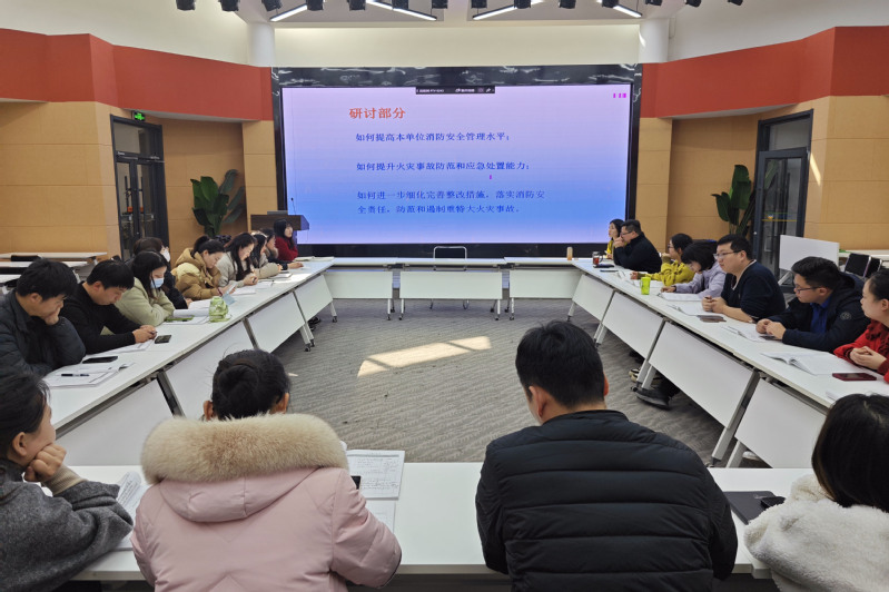 接着,全体教职工观看消防安全警示教育片,学习分析片中的火灾案例。李浩楠利用消防安全PPT从火灾的分类、起火原因、什么是“三懂四会四个能力”等方面为大家进行了消防安全培训。随后,全体教职工围绕如何提高本单位消防安全管理水平,如何提升火灾事故防范和应急处置能力等主题展开研讨,并逐一发言。孙媛慧说:“宿舍班级辅导员和生活老师在日常消防安全隐患排查中,要对学生桌面上的个人物品及床边角落做到精细化排查,尽早发现安全隐患。同时,要帮助学生养成人走、灯熄、电停的好习惯,进而从根源避免安全隐患的出现。”
