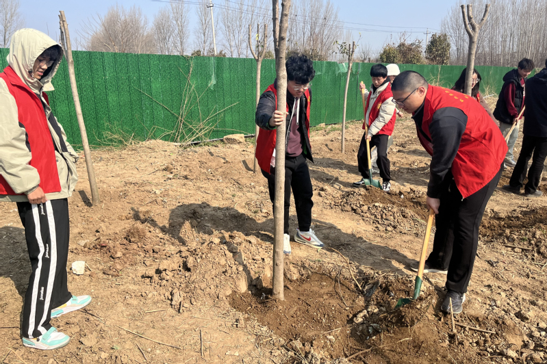 接下来,全体党支部成员手持铁锹、铲子,精神抖擞地来到学院医工楼南侧,开展“志愿添新绿”植树活动。这些树木不仅为校园增添了生机与活力,更是承载了全体党支部成员对雷锋精神的传承与发扬。