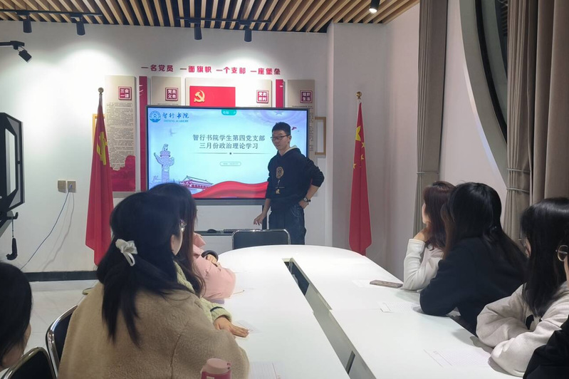 3月14日晚,智行书院学生第四党支部通过“线上+线下”相结合的方式,开展三月份政治理论学习。会议由党支部书记高渊皓主持,党支部全部成员参加。
