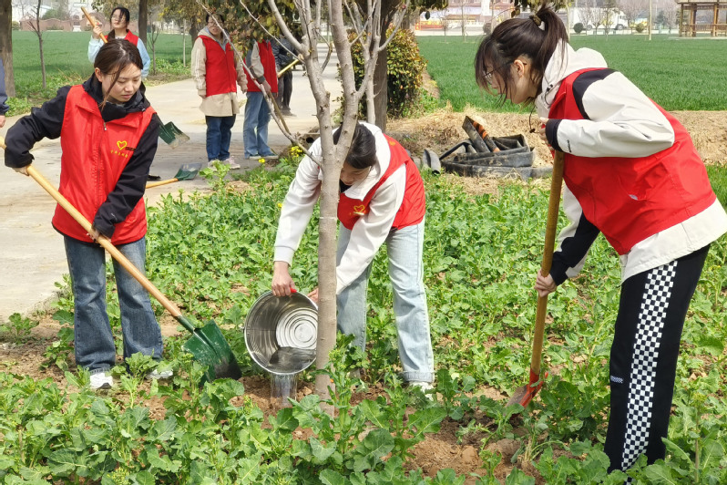 为了更好理解雷锋精神的现实价值,发挥入党积极分子的先锋作用,在七里营村党总支书记吕标庄等干部的带领下,在场师生分工合作,相互配合,手持铁锹、铲子、树苗开展植树。挖坑、栽树、填土、浇水、覆土……各个环节相互配合,接连种下了二十余棵海棠树。活动之后,吕标庄说:“这些入党积极分子,这些大学生以实际行动学雷锋、见行动,给七里营毛主席视察田的绿化和提升献出了一份爱!”