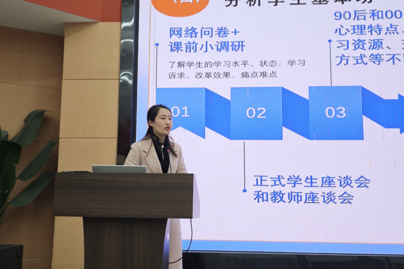 会上,范艳香首先阐明教学基本功的重要作用,她表示,课堂教学是整个教学工作的中心环节,对于教学工作的质量有着决定作用,而教学基本功是教师素质的重要表现,更是教学成败的关键。接着,范老师结合自身的教学经验,给老师们讲解了高校教师的十项教学基本功,包括解读教材基本功、课堂语言基本功、书写基本功、分析学生基本功等,并强调说,课堂教学要以学生为中心,根据教学内容和学生实际,准确选择教学模式和教学方法,合理安排教学程序和教学时间,同时,还要充分利用人工智能、智慧教室等现代化信息技术的教学资源,呈现智能化的教育新样态,成长为具有信息化应用和融合创新能力的新型教师。