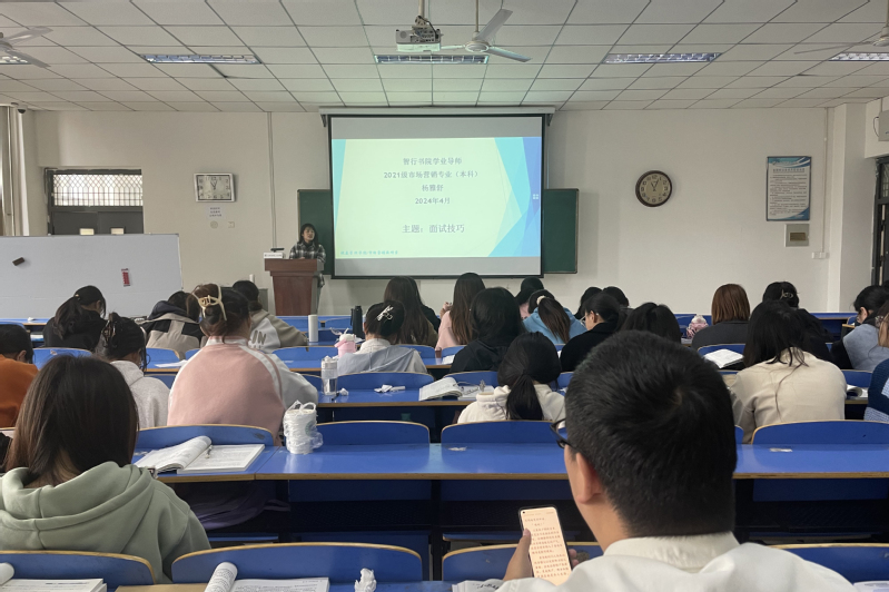 4月4日,健康管理学院学业导师杨雅舒于问学楼403开展了以“面试沟通技巧”为主题的学业指导活动,2021级市场营销83-85班全体同学参加。
